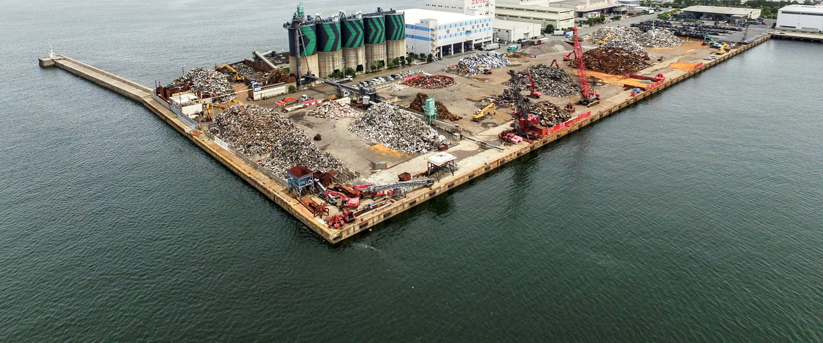 大阪府泉大津市に位置する泉大津本社は、大都ヤード内にあり広大な敷地面積を活かし大型や長尺の鉄スクラップ買い取りに対応しております。