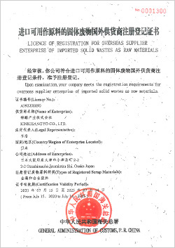 | 中国輸出許可(AQSIQ) | A392110024 |