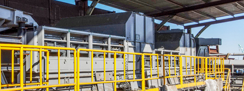シュレッダーでの破砕工程、磁選機・手選別ラインでの選別を経た産業廃棄物を過電流を用いてアルミなどの非鉄金属を選別するイタリアSGM MAGNETICS社製渦電流選別機です。