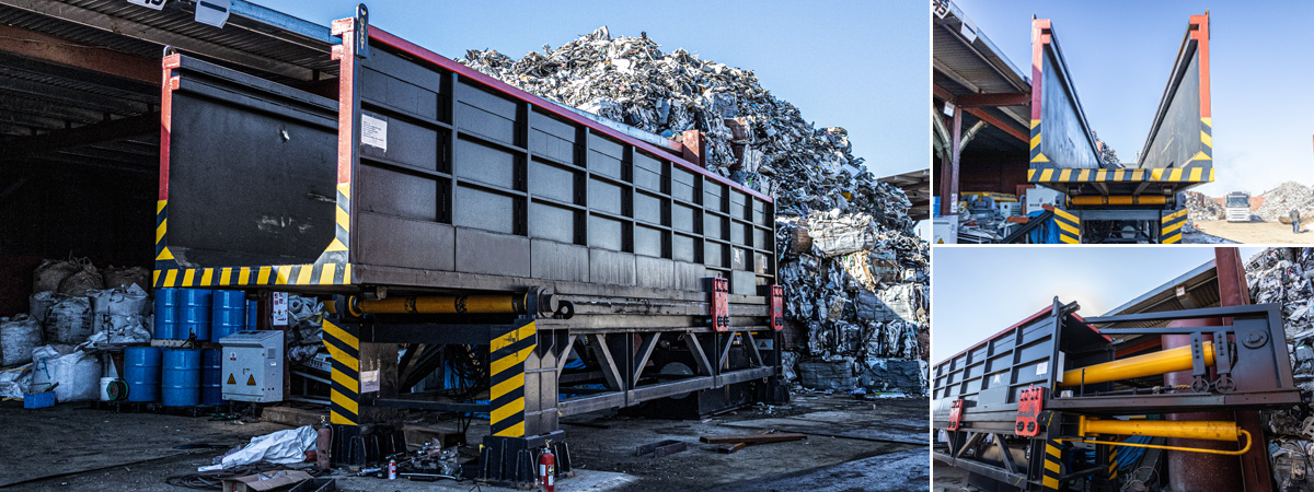 スクラップをコンテナへ短時間で効率よく積み込みすることを可能にする設備です。コンテナローダーにスクラップを投入し、油圧の力によってコンテナローダーが水平に移動してコンテナへスクラップを積み込みます。