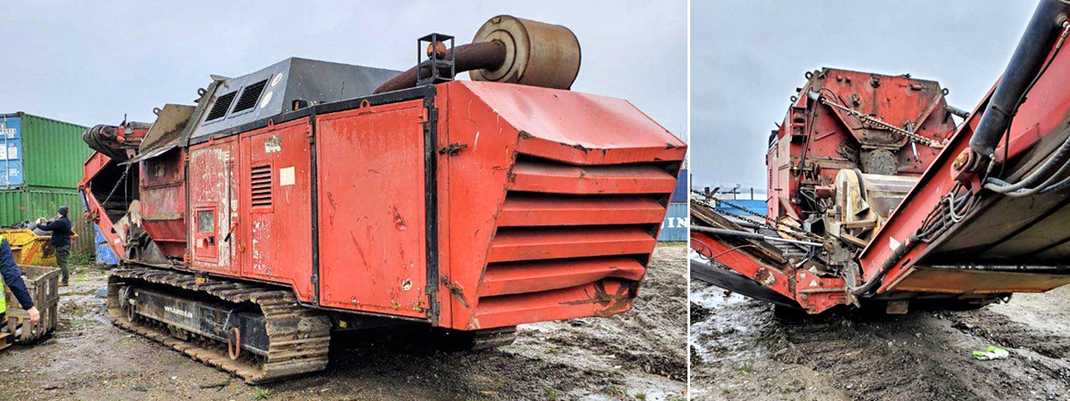 上記の移動式粗破砕機と連携して使用するため移動式の破砕機。粗破砕を行った後にさらに細かく破砕するための機械です。
